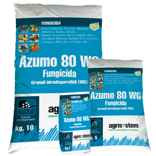 COMPATIBILITÀ: AZUMO 80 WG non è compatibile con antiparassitari alcalini, con oli minerali e captano. Il prodotto deve essere irrorato a distanza di almeno 3 settimane dall’impiego di oli minerali e captano.