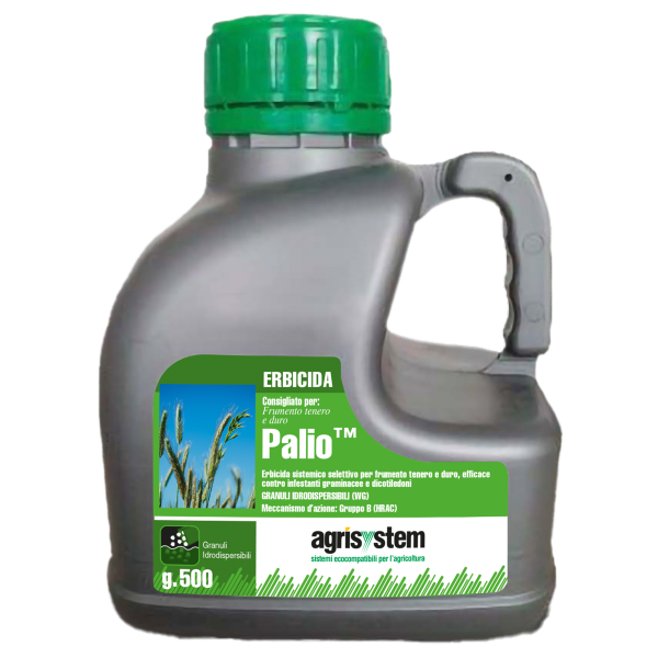 PALIO è un erbicida sistemico selettivo di post-emergenza per il frumento tenero e duro, a base di pyroxsulam. È efficace sulle principali infestanti a foglia stretta: avena, loglio, scagliola, forasacco e coda di volpe e possiede, in combinazione con altri erbicidi a diverso meccanismo d’azione, anche un’ottima attività su alcune foglie larghe.